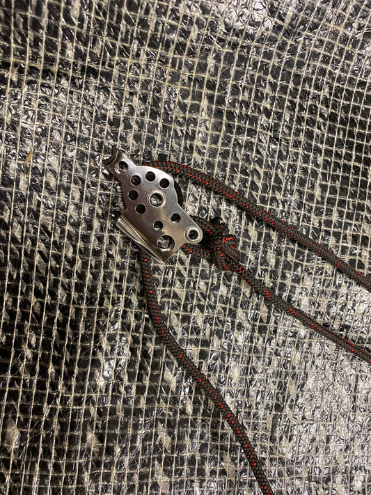 Anodised track with piston stop nylon fairlead and ball bearing cleat